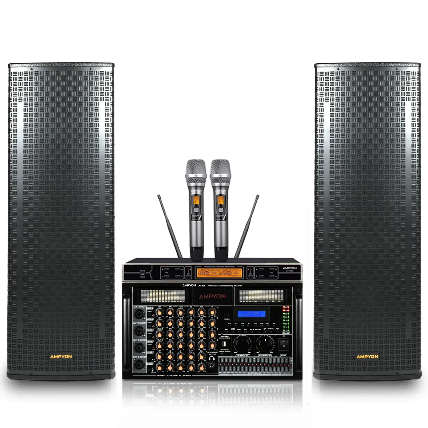 The LXA-620 Core: Analog Soul with a Digital Engine At the heart of the AKS-603 is the Ampyon LXA-620 Mixing Amplifier—a professional-grade powerhouse that combines classic analog circuitry with a sophisticated digital sound engine. This hybrid architecture ensures crystalline vocal clarity while maintaining the natural resonance of your voice. With dedicated, tactile rotary dials for Echo, Delay, and Repeat, the LXA-620 grants you immediate, physical authority to sculpt your vocal effects in real-time, providing a zero-latency mixing experience.